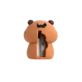 Apontador em plástico com design de urso que une simplicidade, segurança e apelo infantil; ideal para o uso diário, fácil de manusear e transportar.